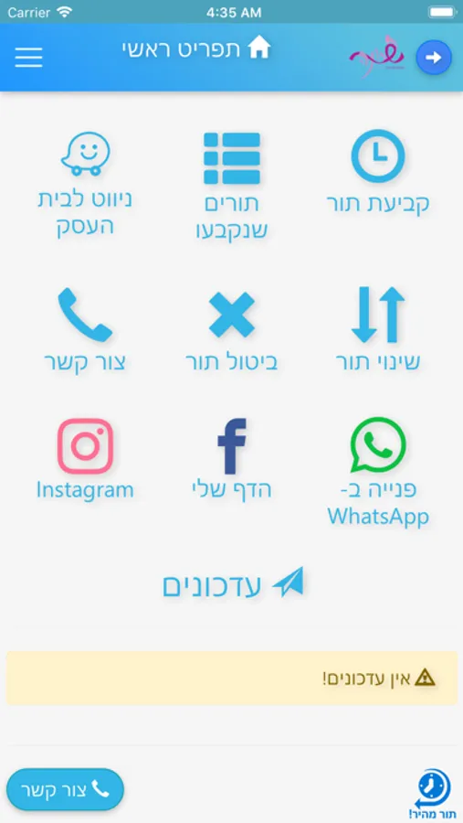 באפליקציה אפשר לקבוע תור, לנווט באמצעות Waze ולפנות אליי באמצעות WhatsApp.