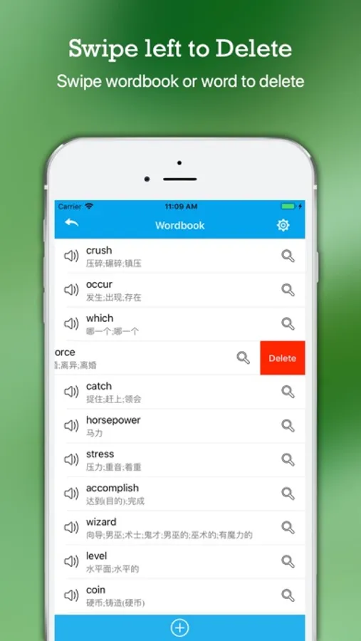 + Swipe left to Delete: Swipe wordbook or word to delete
