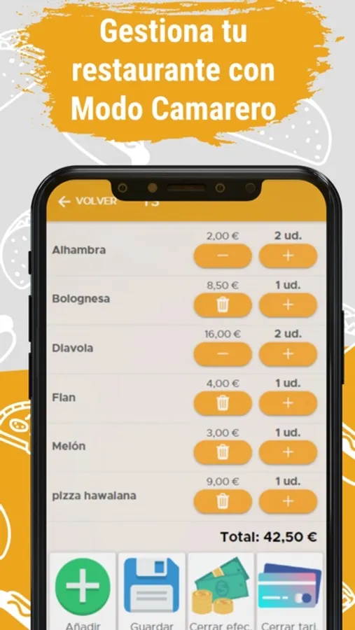 With this mode, employees are able to manage the restaurant, placing orders, modifying products on the table, closing tables with cash or card, charging separately and even changing tables. This mode requires a subscription to Foodeo, check our website https://foodeo.es for more information.