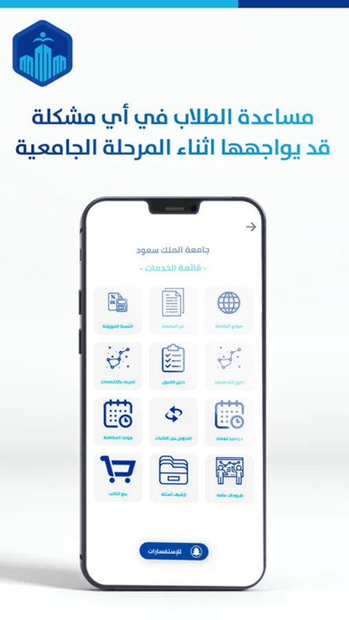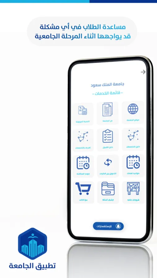 دليل الطالب الأول للالتحاق بالجامعات السعودية الحكومية ،وحساب النسبة الموزونة بحسب الجامعة و الكلية ، ومساعدة الطلاب في أي مشكلة يواجهونها أثناء الدراسة الجامعية.