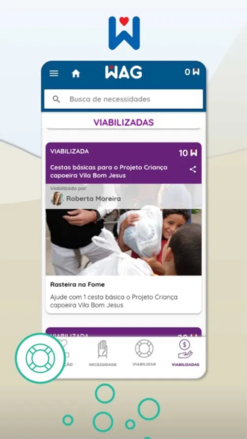 - Faça a conversão dos seus WAGs: navegue pelas necessidades registradas e doe seus WAGs para ajudar causas alinhadas com os seus propósitos.