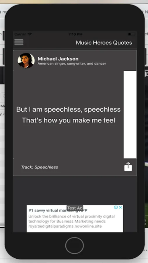Music Heroes Quotes is an OFFLINE application which has tons of music quotes from your favourite top notch, hero Artist, whether it is 2pac or Adele, Drake or Rihanna, The Weekend or Micheal Jackson, there is something for you.
