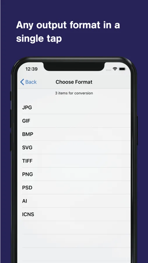 JPG, GIF, BMP, SVG, TIFF, PNG, PSD, AI, ICNS !