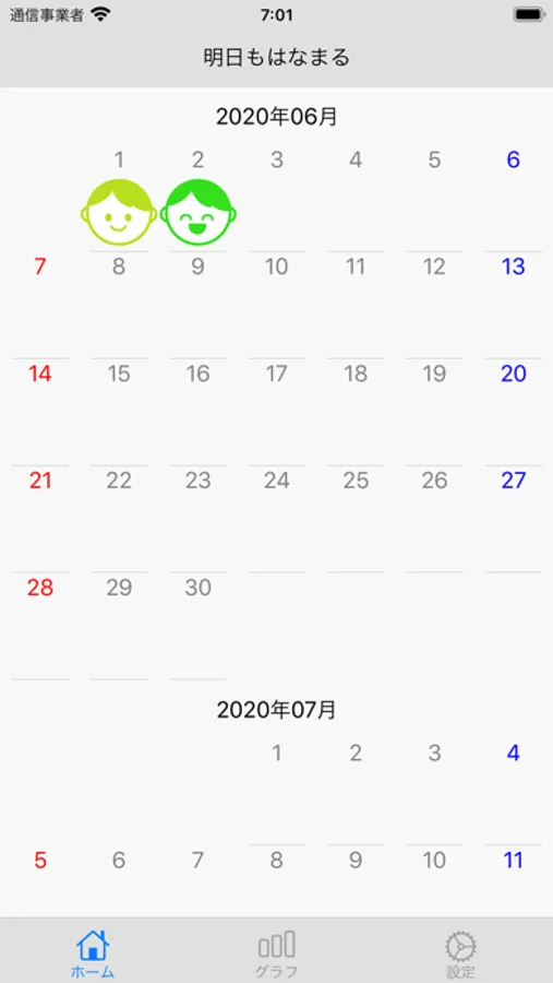 1日の平均の評価は自動でカレンダーにスタンプします。