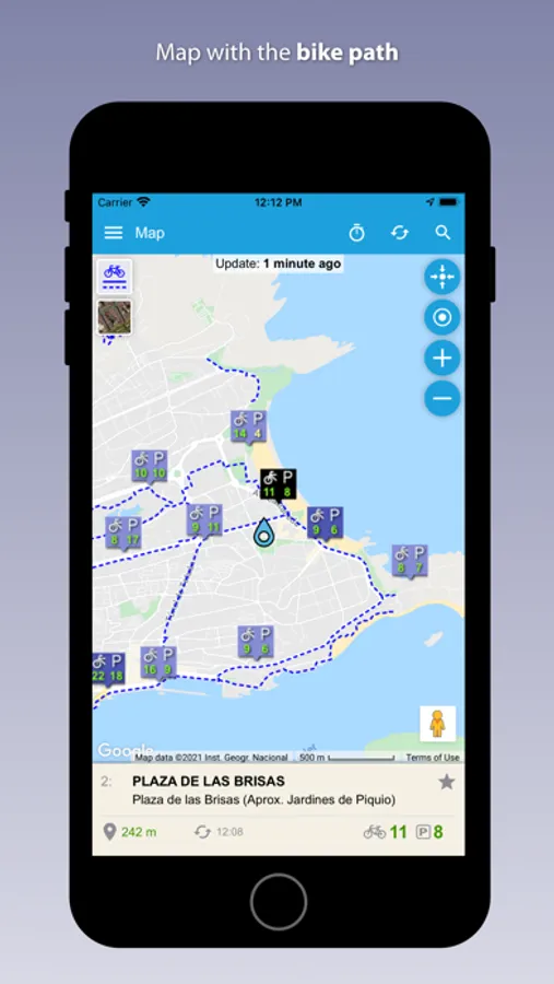 - Map of the city with the position of stations showing the number of bikes and the free stands for each station. It includes also the BIKE PATH.