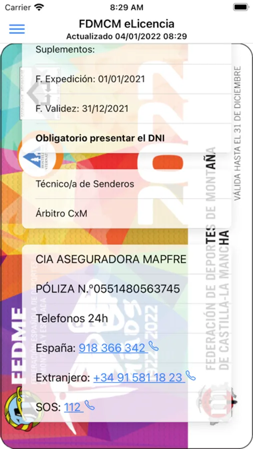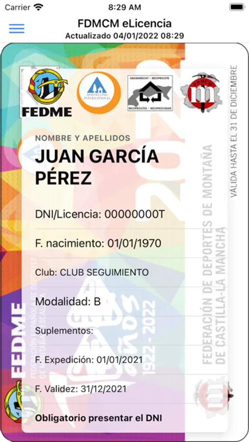 Tarjeta federativa virtual de la Federación de Deportes de Montaña de Castilla-La Mancha