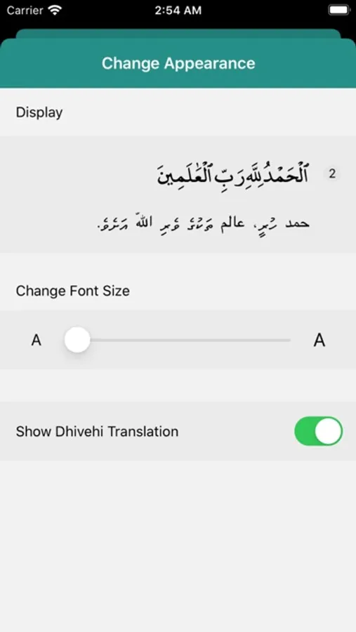 App also contains all verses of Quran with the Dhivehi translation. The source was taken from https://github.com/kudanai/Quran-Translation