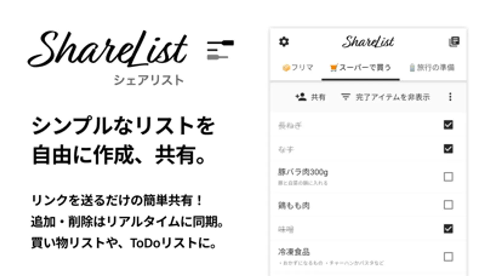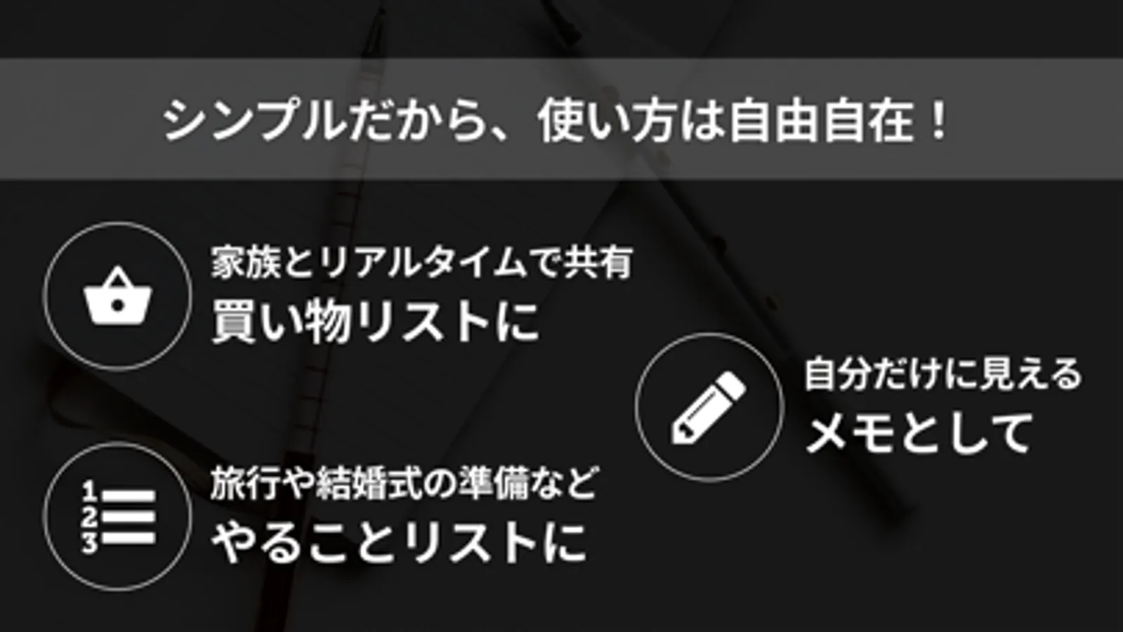友達や家族にリアルタイムに共有される、リスト型メモアプリ。