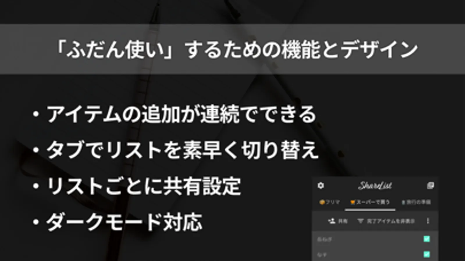 ShareListは一人で日常的に使えるように設計されています。そのため、操作性やUIには最もこだわっています。