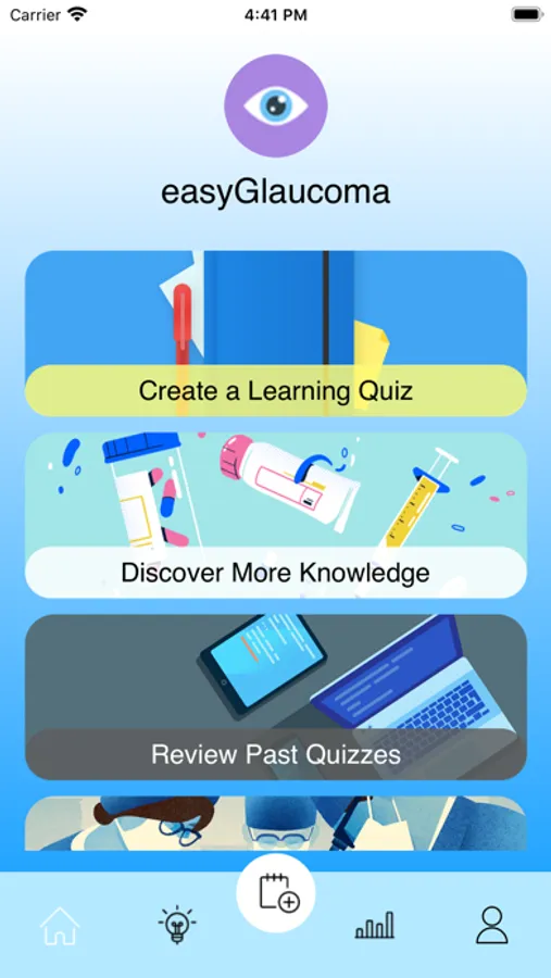 Use easyGlaucoma's intuitive interface to build your glaucoma knowledge using evidence based quizzing methods. Monitor your progress, read up on more glaucoma knowledge, and learn how to better protect your vision!