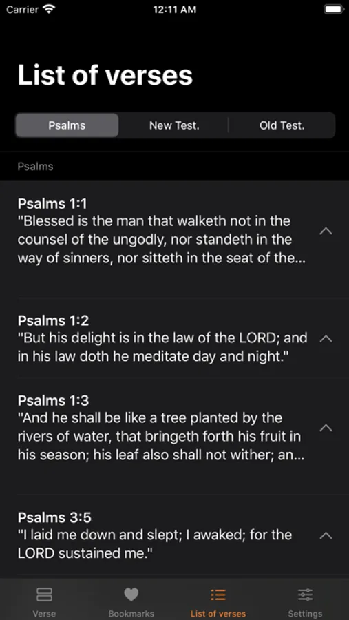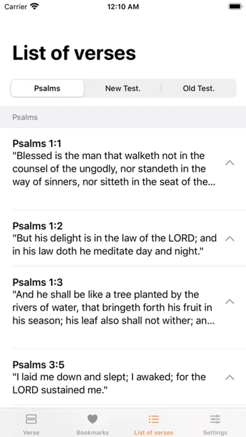 Verse of the Day is an app that displays a Bible verse at each access. The ideal app to bring you relief and comfort from the Holy Bible. Perfect for you to read your verse for the day, including Psalms and Proverbs!
