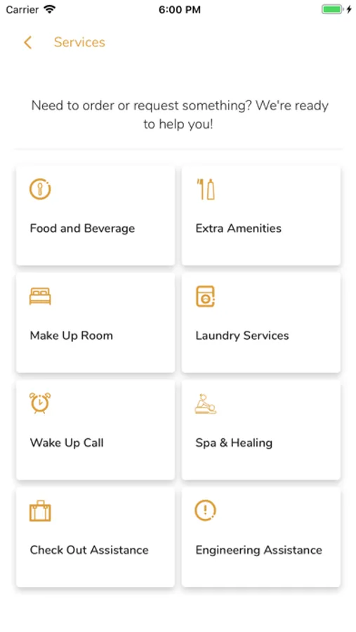 * Order in-house Hotel & concierge services (room services, amenities, etc)