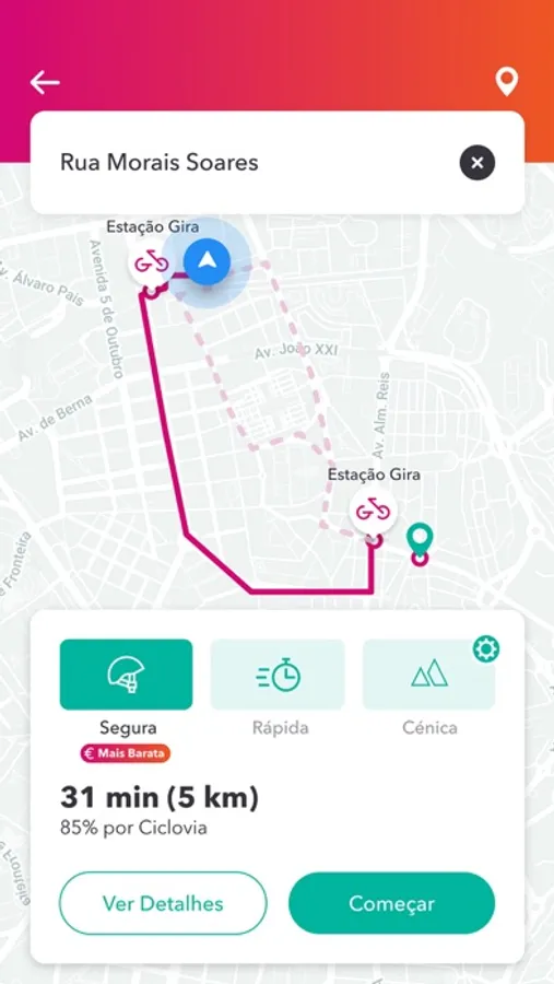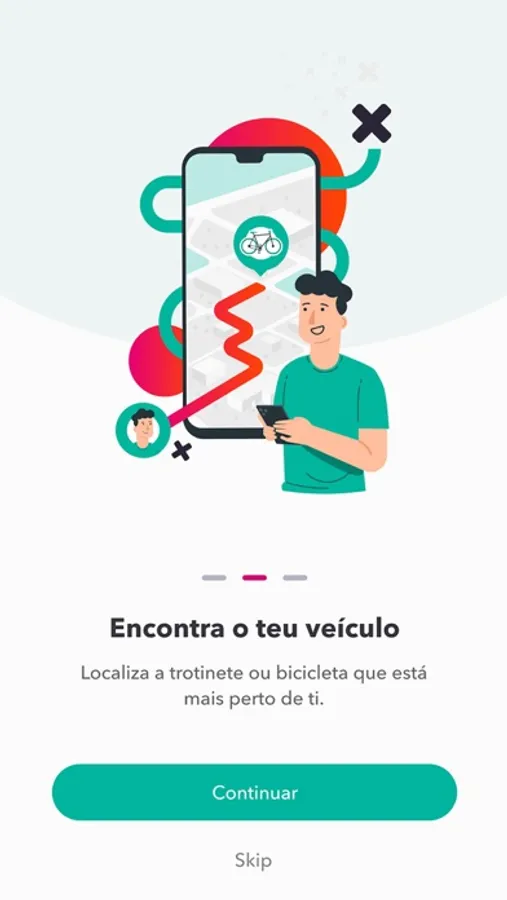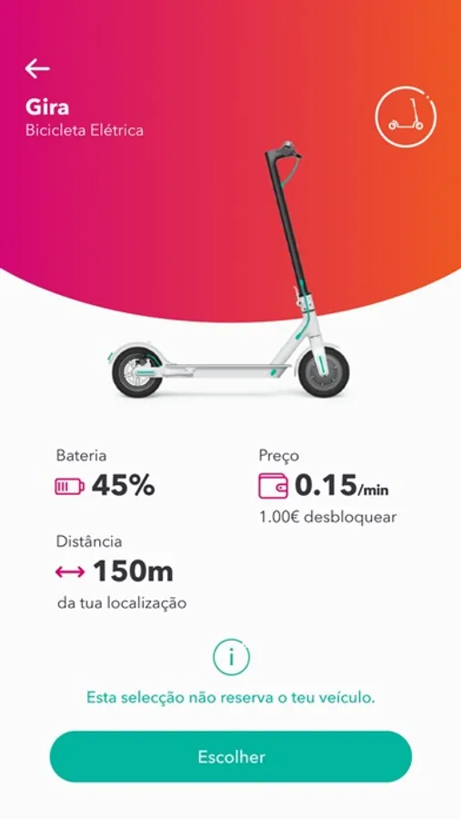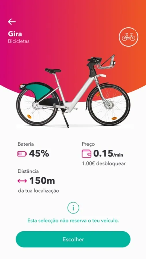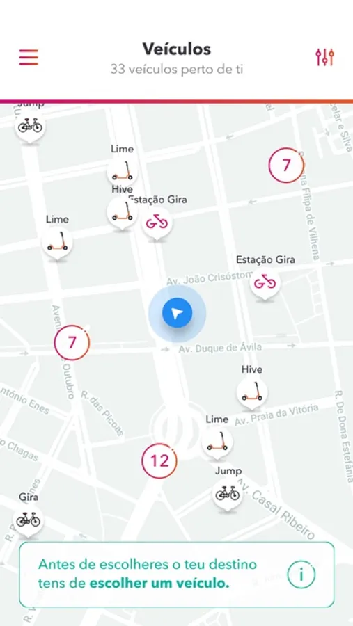 Vê no mapa as trotinetes e bicicletas partilhadas mais próximas de ti e escolhe o veículo em que queres fazer a tua viagem.