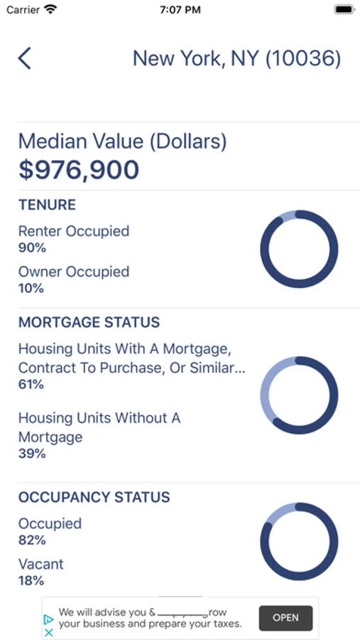 With Zippy, you can quickly see key real estate statistics for your current location. Instantly get home values, price asked, total units, average rent, etc. with Zippy.