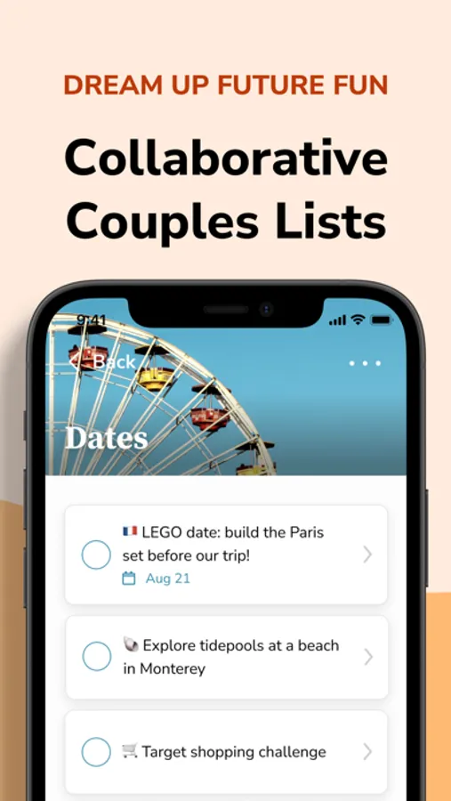 - Already have restaurants, movies, trips, or recipes you want to try together in mind? Collect those fleeting ideas in Wishlists, your date planner / couples calendar, so they actually happen!
