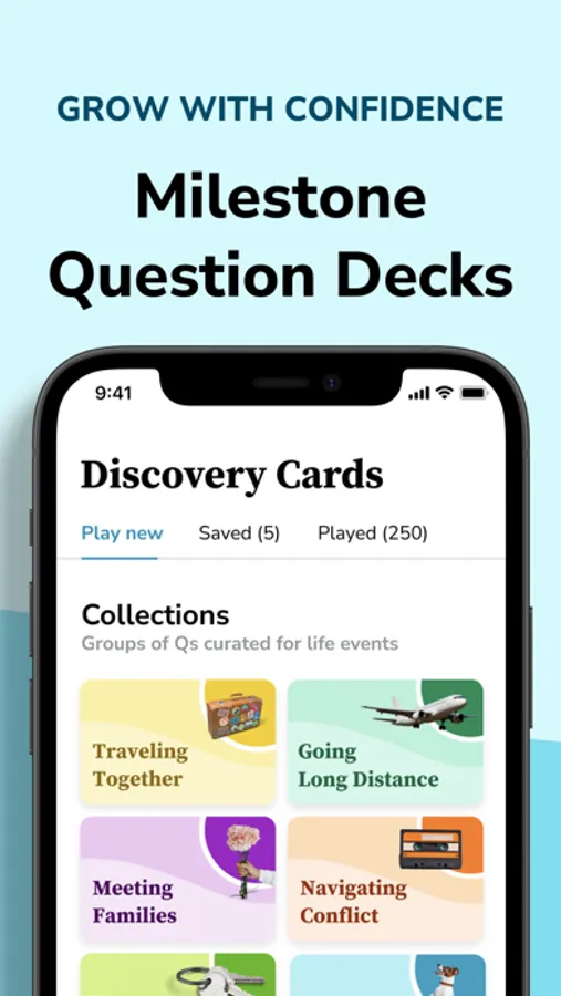 - Draw from 6 categories of relationship card deck questions: interests, values, family, money, and intimacy, or explore collections of couples questions based on milestones (ex: meeting families, moving in together, getting married, or even opening up your relationship)