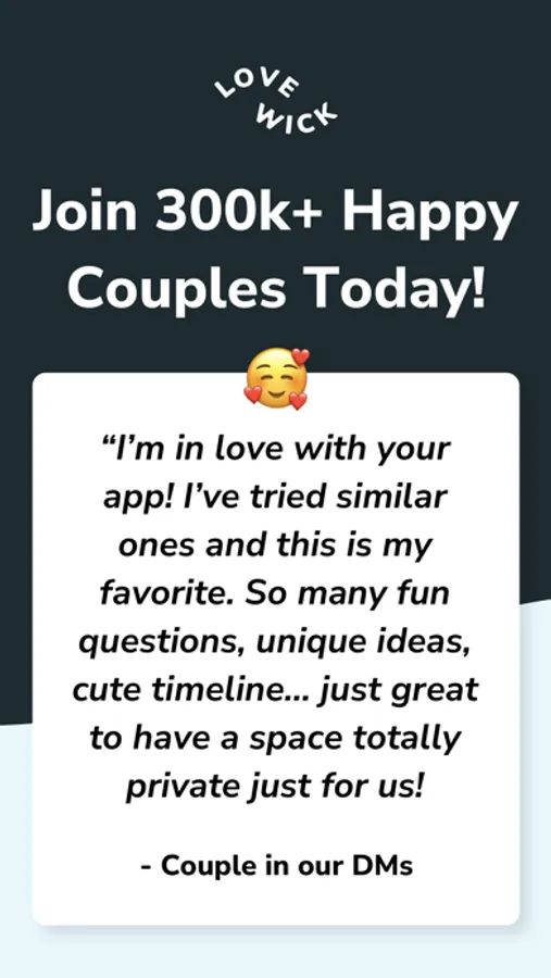 Go beyond one-size-fits-all relationship advice with Lovewick’s curated, research-based, and fun romantic couples questions, date ideas, and tips that help couples like you reflect, play, and grow in their relationships. We’re a small, dedicated team, and we’d love to hear any feedback or ideas to improve our free couples app! DM on socials or email support@lovewick.com. Thank you!