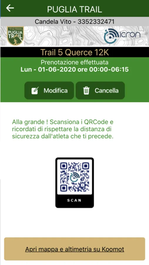 L'app ha due funzioni essenziali: la prenotazione di uno slot di partenza e la scansione dei QR Code che certificano il passaggio ai vari checkpoint.