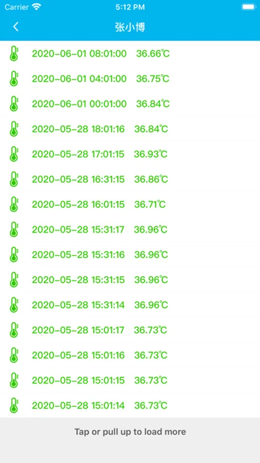 3.测温数据实时上传到服务器保存,可随时查看历史记录。