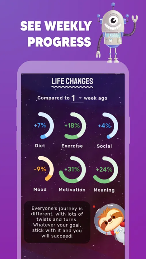 Improving yourself unlocks more chapters of the Adventures of Major Meme. Want to know what kind of relationships and inspiration found in deep space? Get motivated and start your self improvement adventure today!