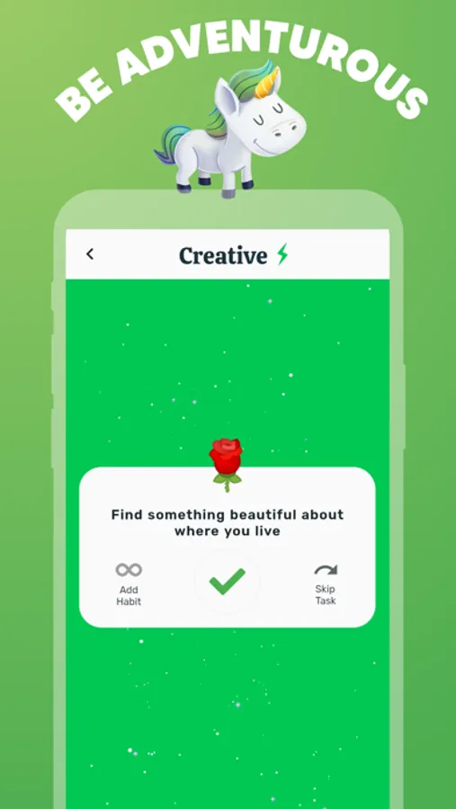 Try something new by completing Adventures to improve your creativity, organization, mood, and social skills