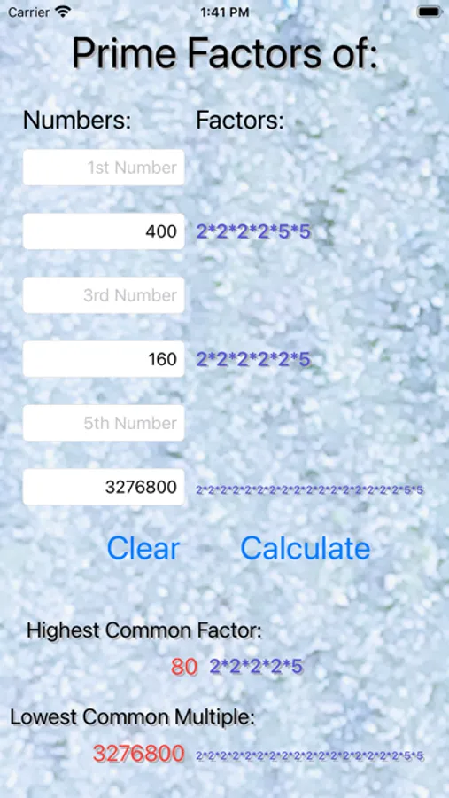 I love numbers. And finding Prime Numbers, which are numbers that can be divided by only 1 and themselves. When I find numbers, I usually try to determine if it is a Prime Number or what Prime Numbers are the factors of it. So to help myself in doing that calculation, I created this app which will show all the Prime Numbers that are factors of the entered numbers, along with the LCM (Lowest Common Multiple) and HCF (Highest Common Factor) for the numbers entered.