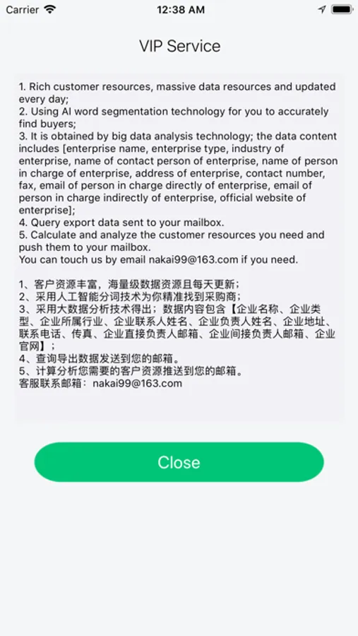 3. It is obtained by big data analysis technology; the data content includes [enterprise name, enterprise type, industry of enterprise, name of contact person of enterprise, name of person in charge of enterprise, address of enterprise, contact number, fax, email of person in charge directly of enterprise, email of person in charge indirectly of enterprise, official website of enterprise];