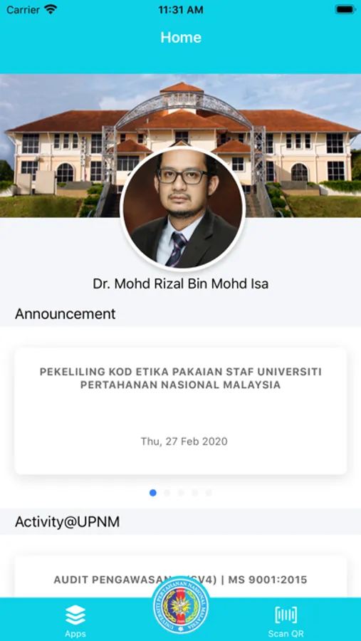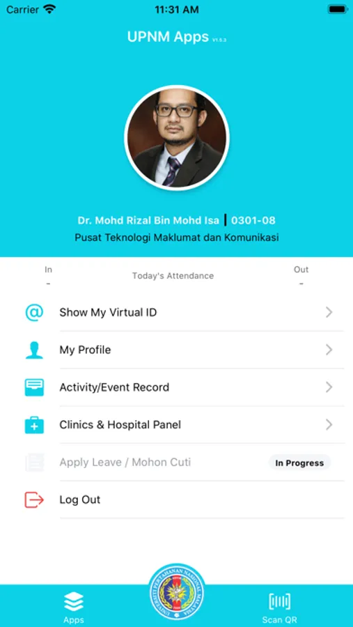 UPNM Mobile Apps mengandungi modul staf iaitu :