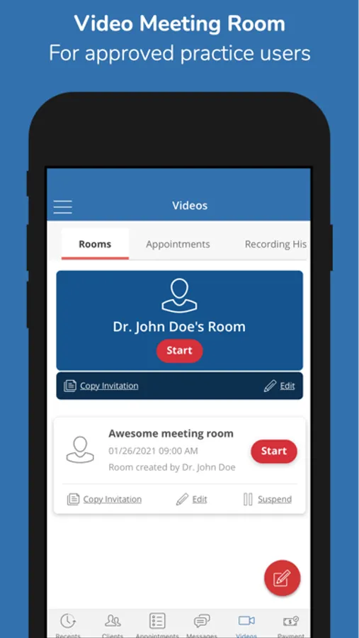 - Host live, 2-way video chat sessions with your clients, perfect for telehealth and telemedicine.