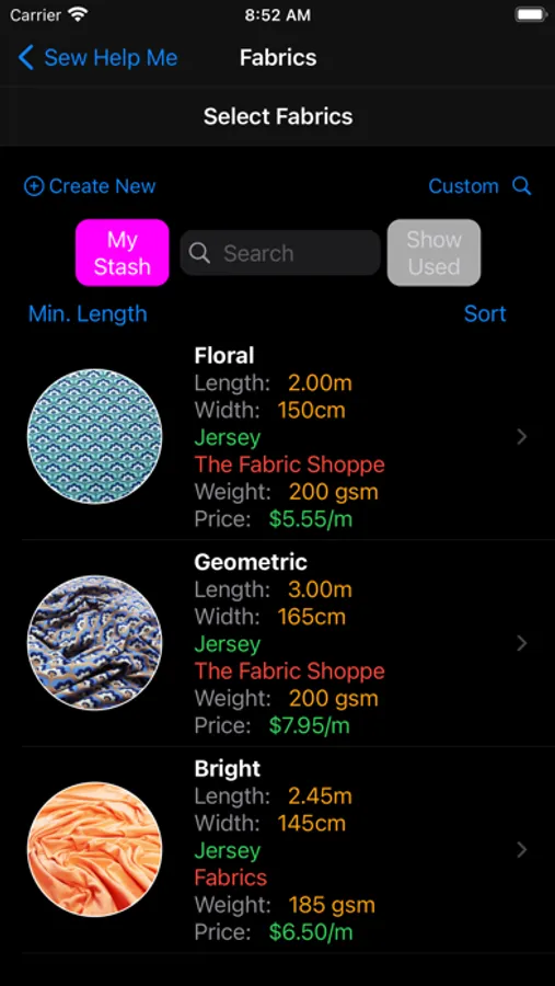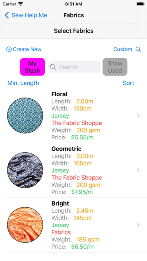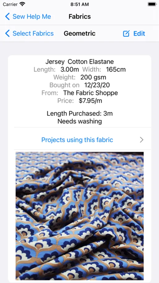 Detailed search facility to help you find your fabrics, patterns and projects. Record links to your favourite blogs, websites and shops.