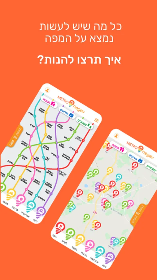 בואו למצוא את האירועים הכי חמים, להתרגש ממסעדות אותנטיות שרק המקומיים מכירים, לחוות באקסטרים את האזור שבו אתם מטיילים או גרים, והכל על גבי מפת מטרו חווייתית או מפה אינטראקטיבית.
