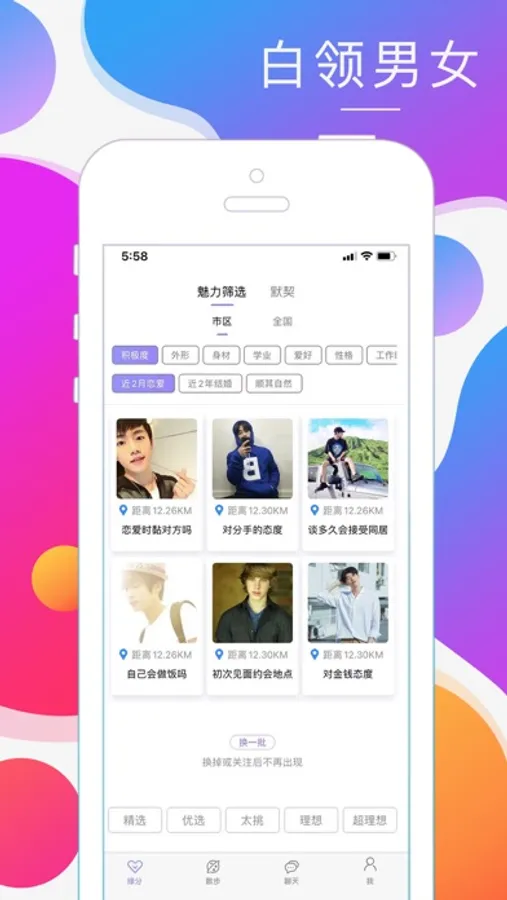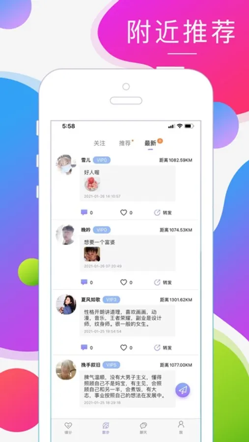 【附近的人】搜索附近大量优质单身男女,筛选你最喜欢的对象(功能有惊喜跟其他app不一样,进来就明白啦~