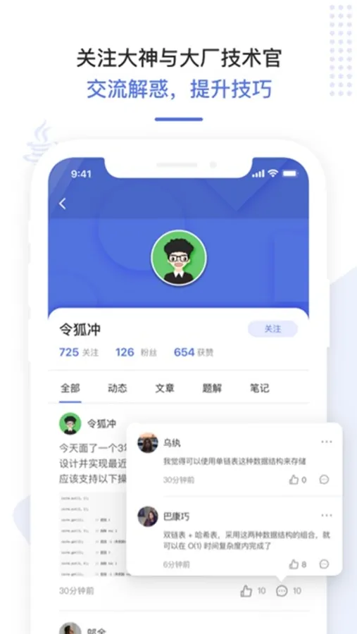 关注大神与大厂技术官,交流解惑,提升技巧。近距离和FLAG,BATJ的面试官交流,即时get面试经验干货,避开面试大坑,掌握最优答法~