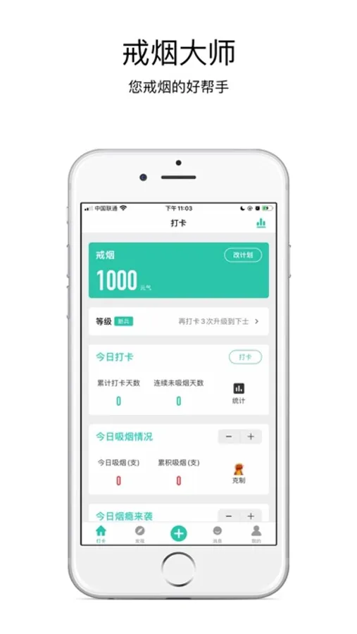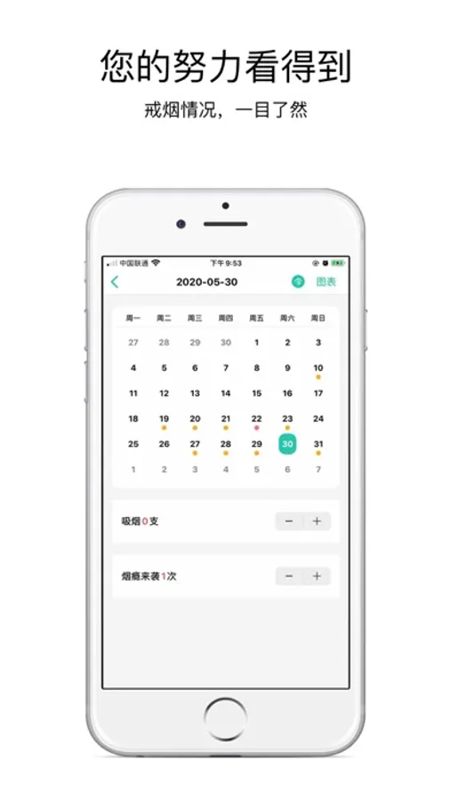 创建戒烟计划,每日打卡,记录吸烟、烟瘾情况。