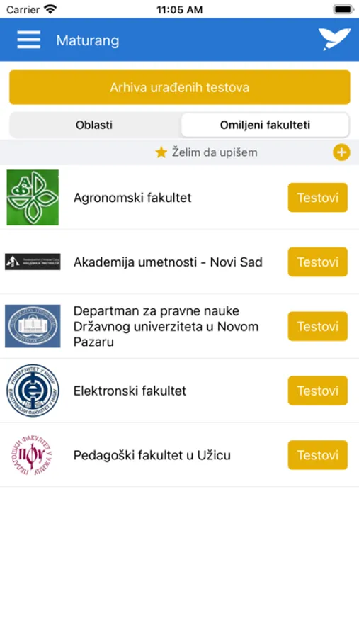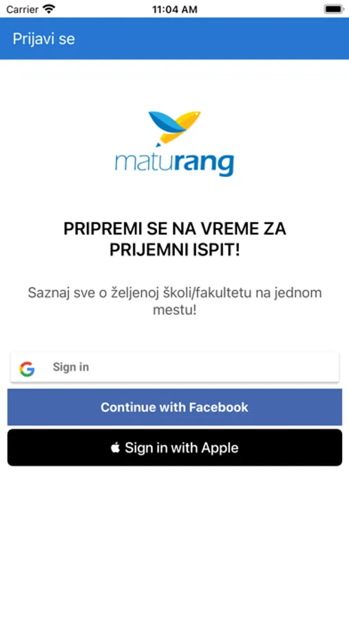 Maturang je aplikacija posvećena upisu na fakultete i visoke škole.