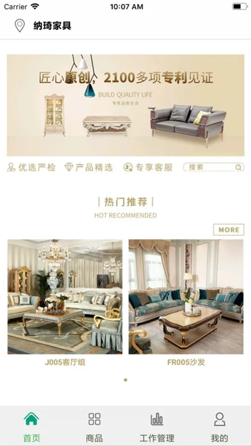 纳琦家具APP主要为了实现企业整体新零售、产品输出展示及落地而开发,所有终端门店导购可以在APP查询产品、提交客户订单,极大提高了管理与服务效率。