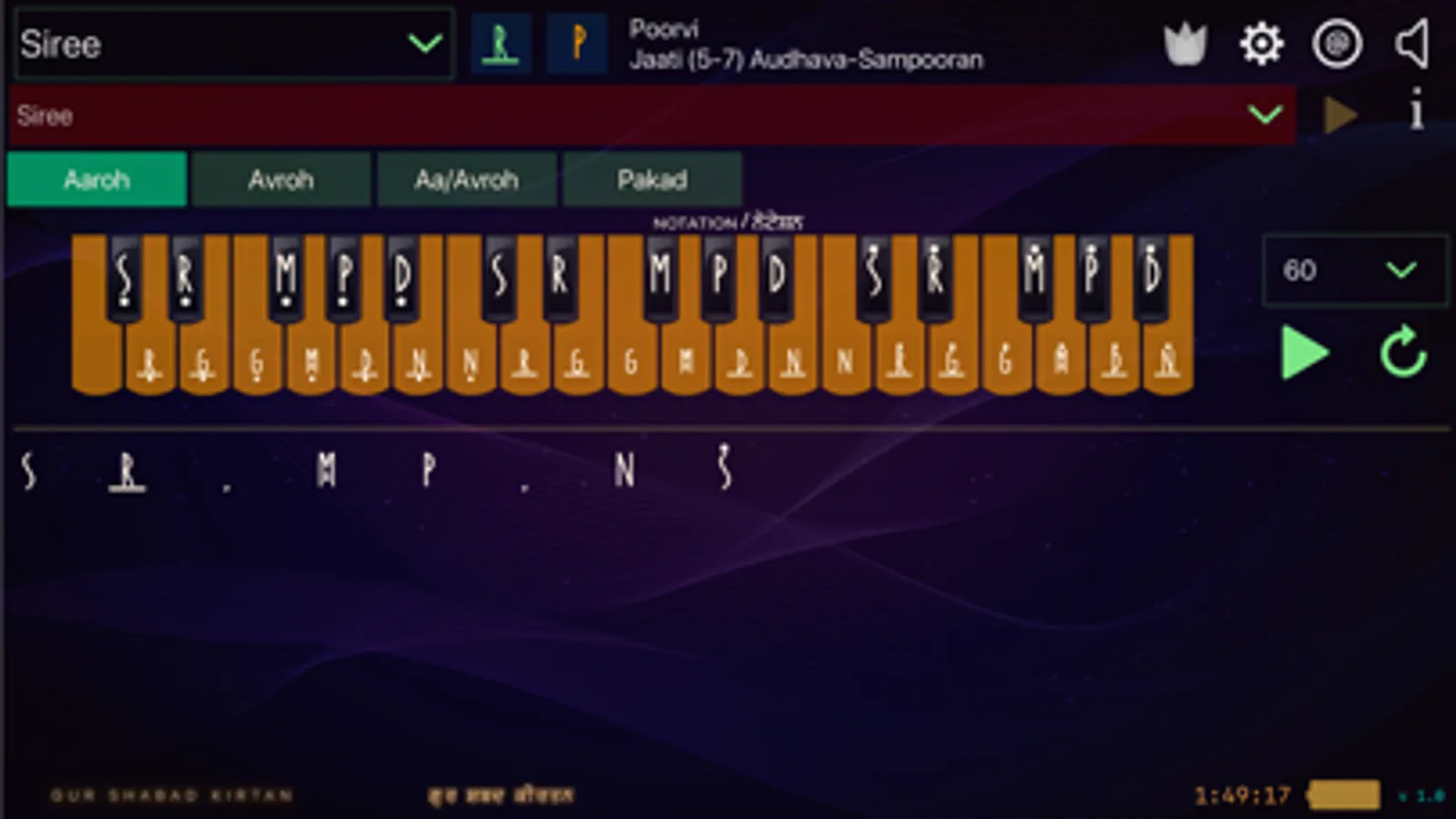 - Each Shabad notation comes with Sthai/Antra and a combined mode where Sthai/Antra are played back to back in a loop for easy practice.