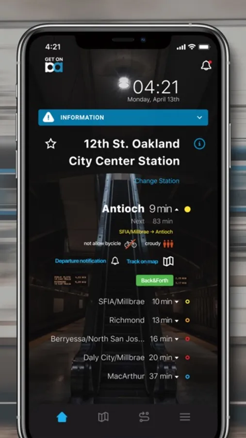Using Get on BART App is the easiest way to plan your trip and get accurate real-time train departures with data straight from BART, along with the official service alerts.