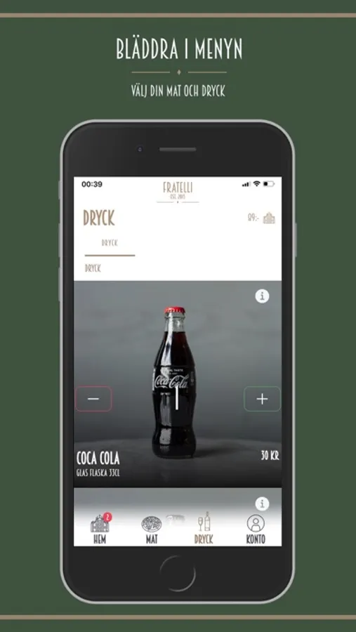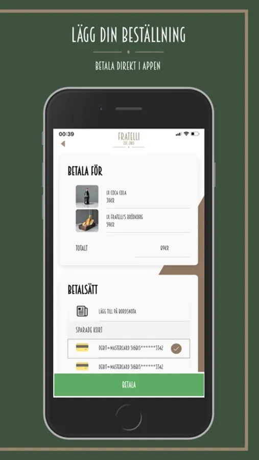I vår app kan du beställa din mat och betala din order direkt i telefonen.