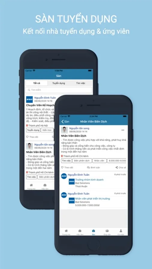 • Easily exchange with each other via comments, chat to achieve effective recruiting goals, find the best job.