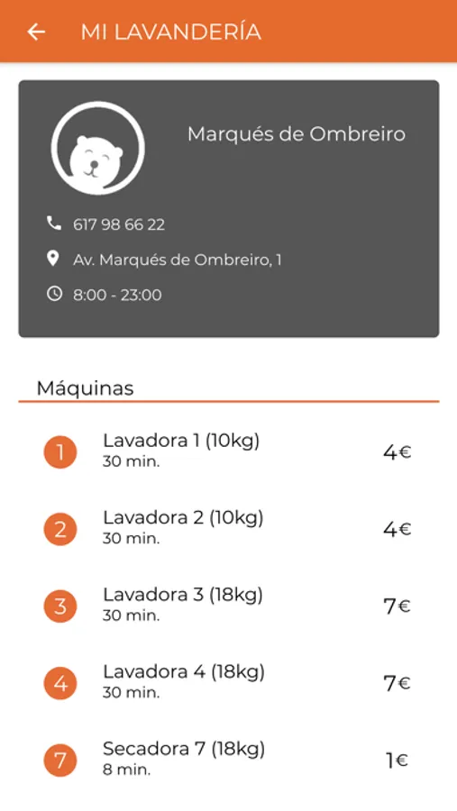 Aplicación para los clientes de las lavanderías autoservicio Oso Blanco