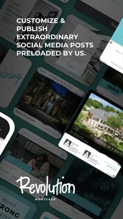 Customize And Publish Extraordinary Social Media Marketing Posts, Preloaded By Revolution Mortgage. **New Design Templates Come Out Every Month!**