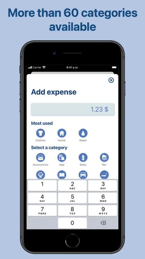 - More than 60 categories available to organize your expenses