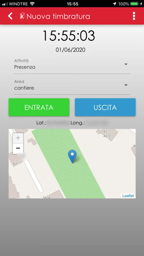 L'amministratore è quindi in grado di visualizzare in tempo reale le timbrature dei dipendenti con la relativa posizione GPS al momento della timbratura.