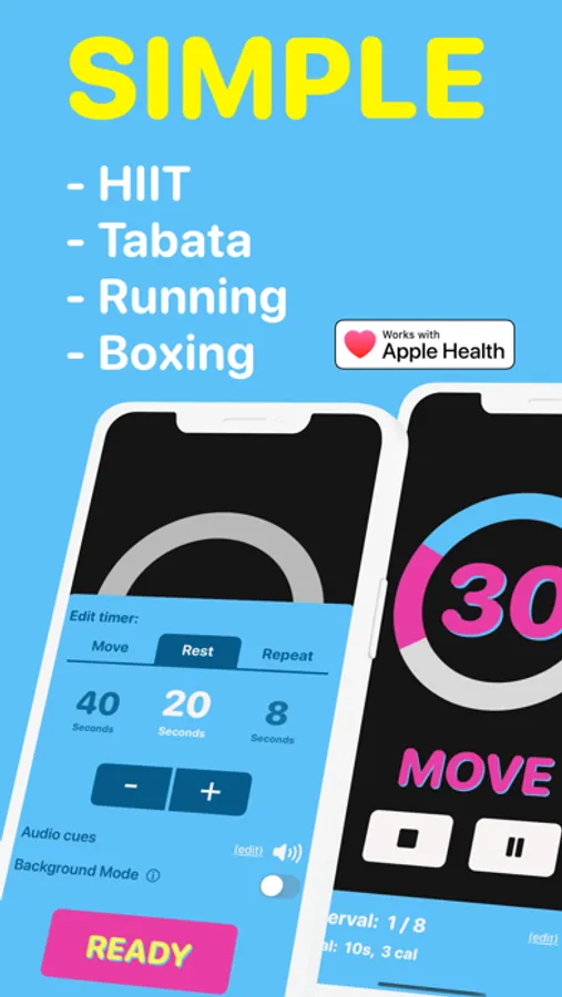 HIIT IT is a simple, powerful, and customizable interval timer for all your needs: HIIT (high intensity interval training), tabata, running, stretching, boxing, or any type of interval workout.