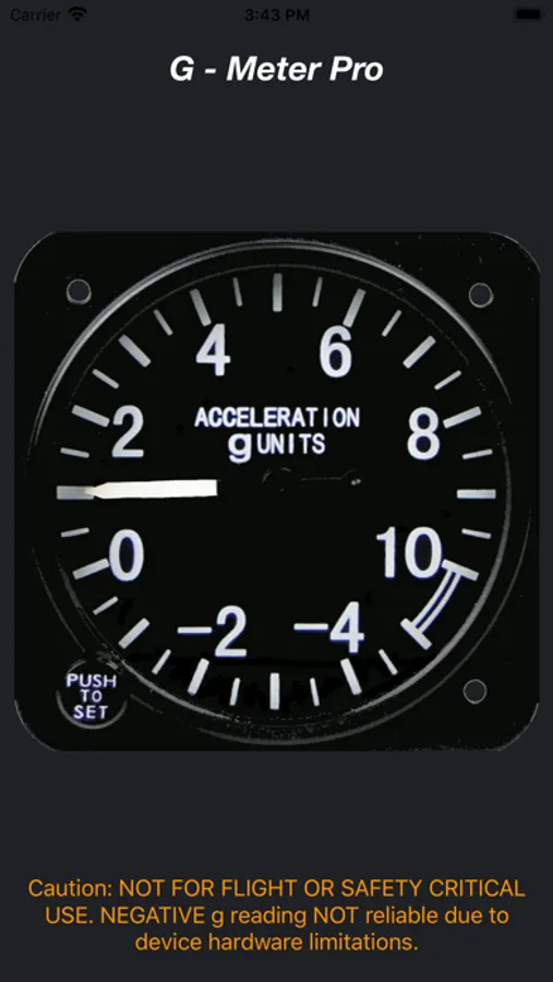 Caution - NOT FOR USE IN FLIGHT OR SAFETY CRITICAL OPERATIONS. Negative g calculation is not accurate due to device hardware limitations.