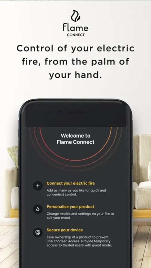 Flame Connect places full control of your electric fire into a beautiful, easy and convenient interface - all from the palm of your hand.
