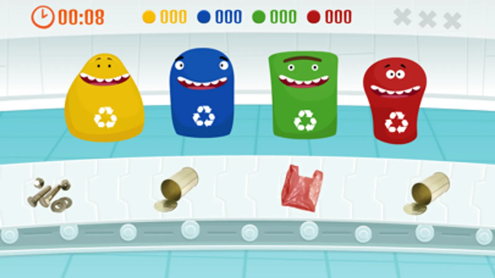Separe os lixos nas lixeiras corretas.