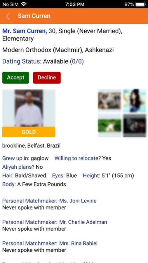This app is specifically intended to be used by LevToLev members and matchmakers.