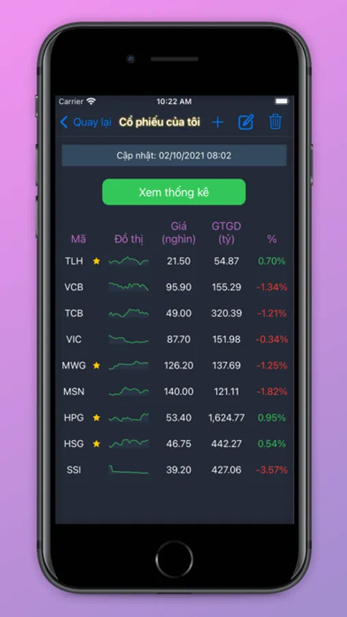 * Chức năng thích cổ phiếu